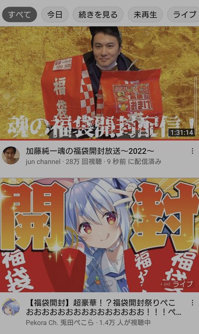 加藤純一とぺこら同じ福袋開封してる、、