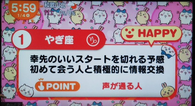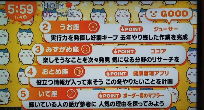 目覚ましテレビ⏰のちいかわ占い、11位だったけどかに座と隣だから1位の気分まである🤭