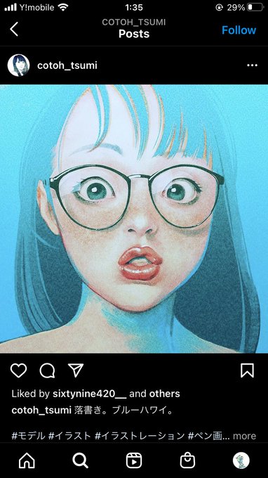 古塔つみの件さっきはじめて知ったんですが、インスタで絵見ててモデルの子メチャクチャ好きなので秒で気づいたやつ、これ