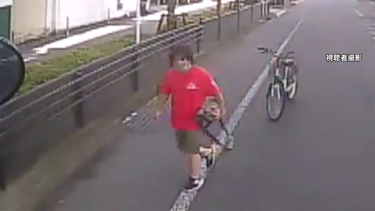 幹線道路を走るトラックの目の前に現れた井ノ口容疑者は、真っ赤な服を着て自転車で逆走。