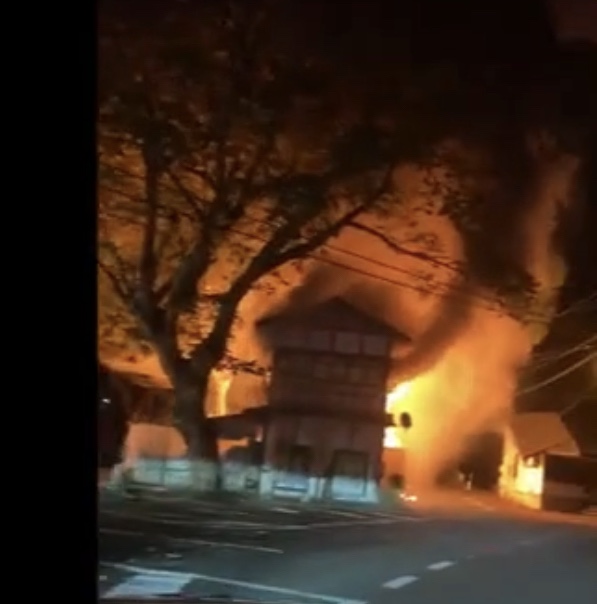3日、岡山県岡山市中区奥市にある奥市食堂が火災。東山峠が通行止めに