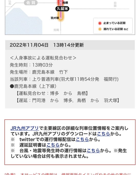 JR九州 列車運行情報(福岡・北九州エリア)【公式】@jrkyushufukhok