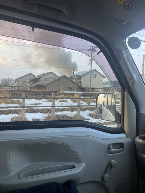 スノーモービルの帰りだけど、山形市内のどこかで火事起こってるん?