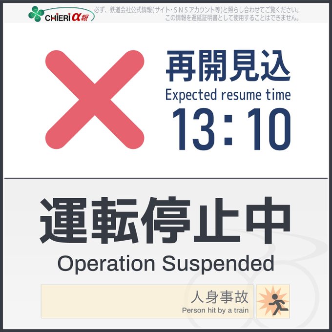 【中央本線[名古屋~中津川]】11:29頃、春日井駅で人身事故が発生し、一部区間で運転を見合わせています。統計から推測される再開時刻は13:04±35分です。 t.co/VVSFJT0ur8