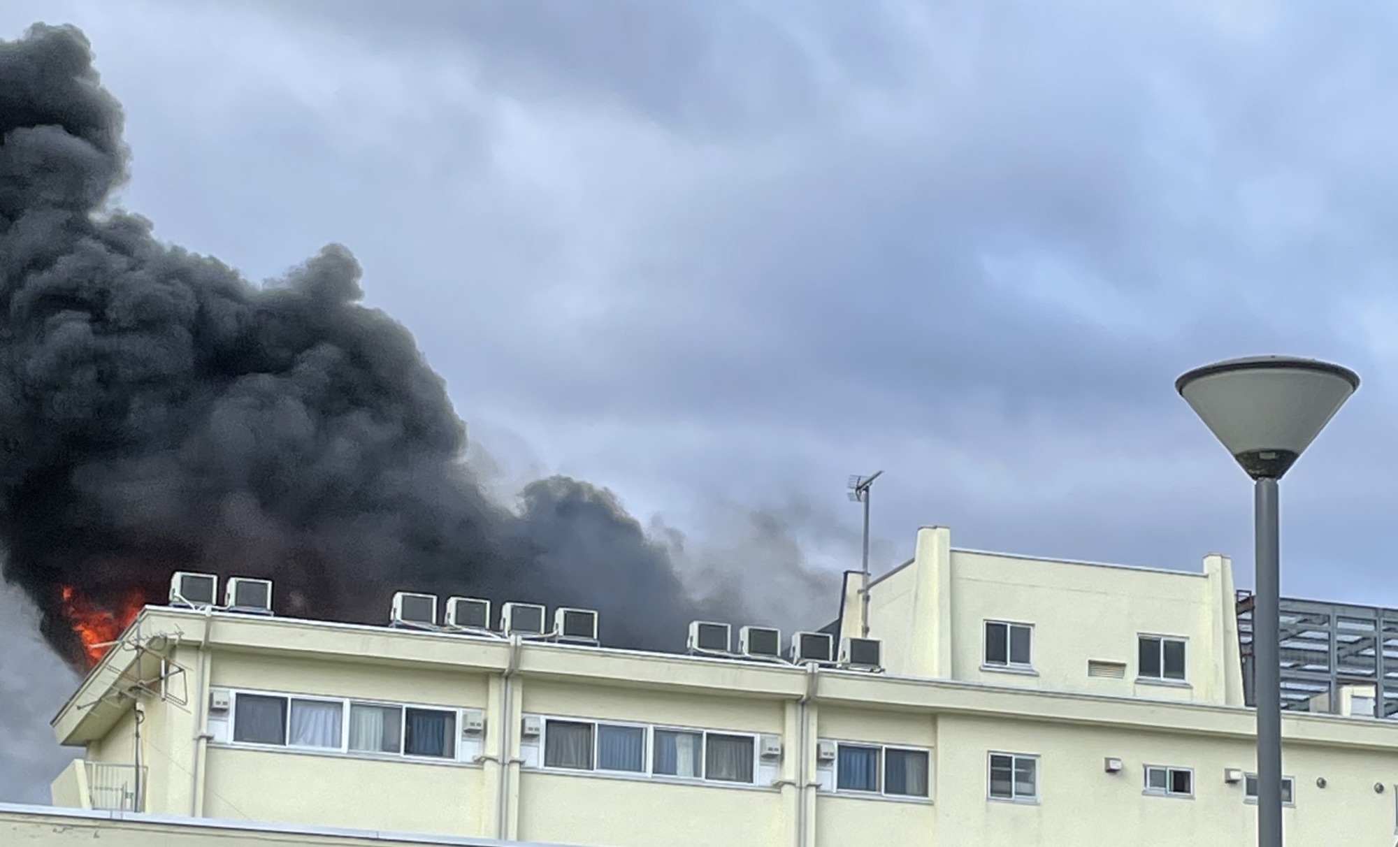 早朝5時半すぎ、緊急通報「屋上の配電盤が燃えている」
