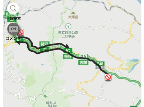 - 下り線:宮城川崎IC → 山形蔵王IC