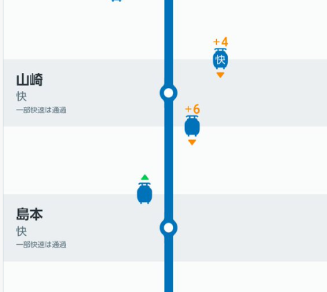 • 例:高槻駅6:14発西明石行きが8分遅れ