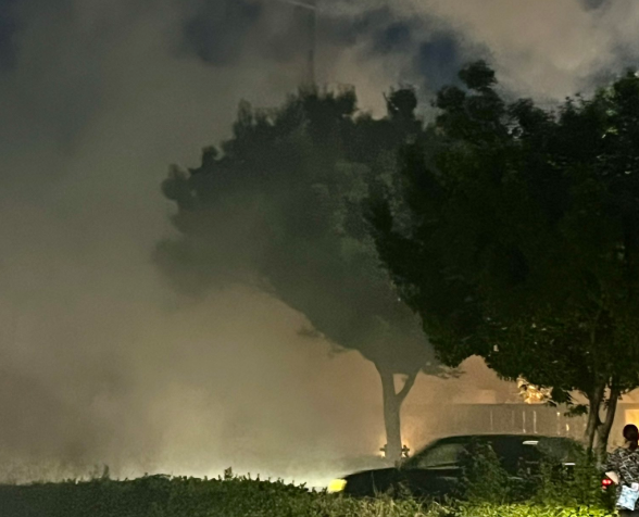 | 被害状況 | 黒煙が立ちのぼる火災、消防が消火中 |