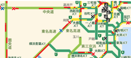 - 影響道路: 首都高速3号渋谷線、東名高速(東京IC)、湾岸線、中央道、K7号横浜線など