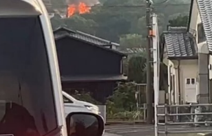 「城山温泉の近くで火事、消防車が何台も来てる」