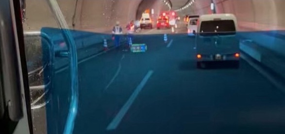 事故原因は不明。現場は片側1車線のトンネル区間であり、見通しや速度、車間距離に注意が必要。 作業員が交通整理中のため、トラブル防止の観点から急な割り込みや追い越しは厳禁。