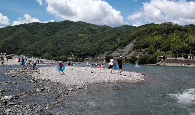 波川公園は、仁淀川の清流に直接アクセスできる川辺の公園で、夏場は多くの家族連れや観光客で賑わう人気スポットです。
