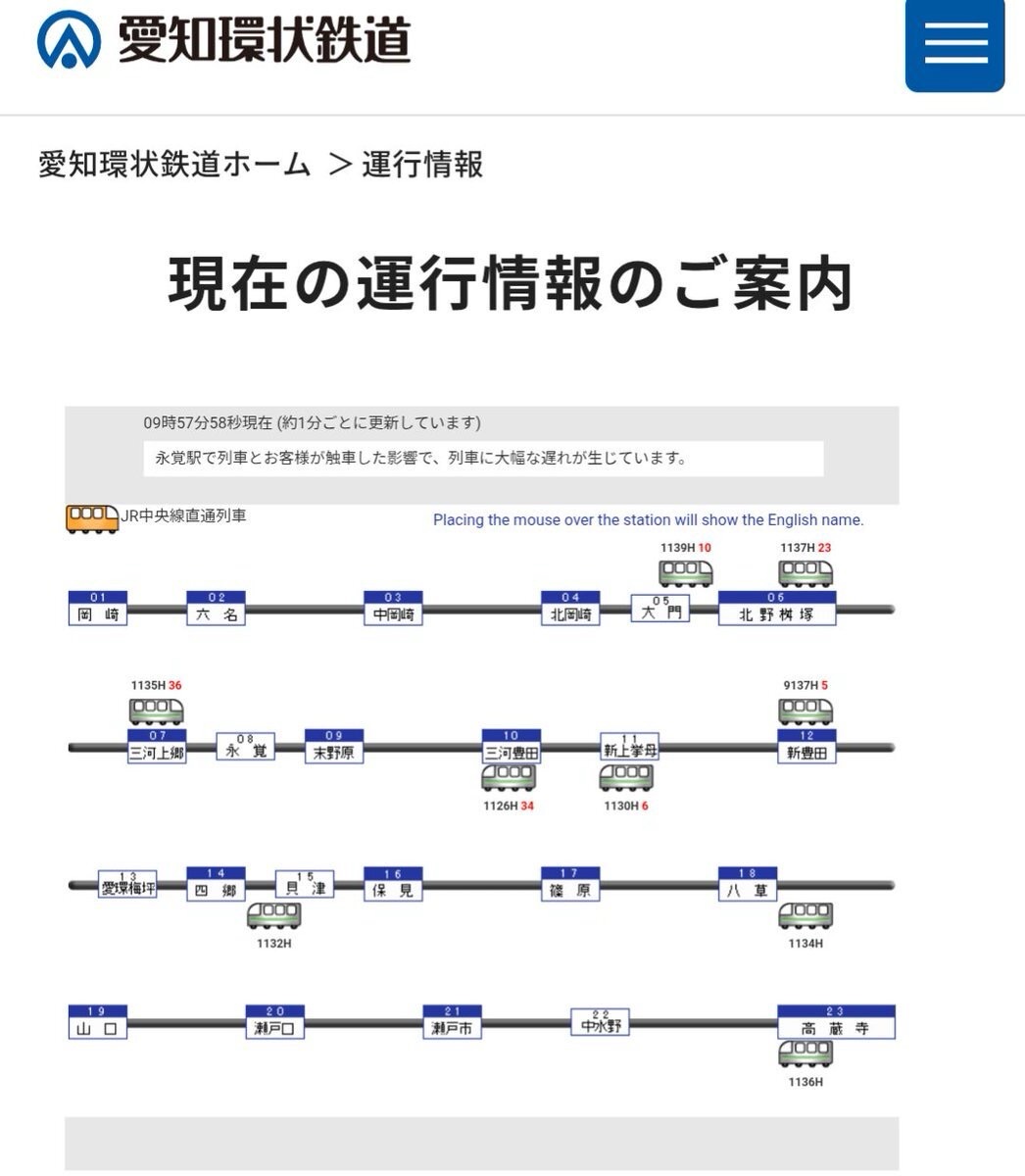 愛知環状鉄道での人身事故が発端 中央線・東海道線に連鎖遅延