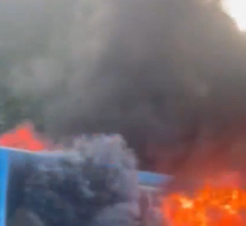🔥現場の状況:バス炎上、学生が避難