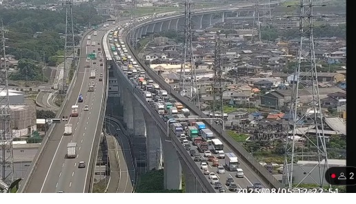 【速報】新東名下り・新富士IC先で横転事故発生 静岡県富士宮市山本付近で渋滞1km【2025年8月5日】