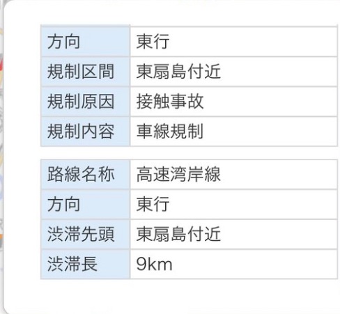 特に東扇島付近は交通量が多く、事故が起きるとすぐに広範囲の渋滞に発展します。