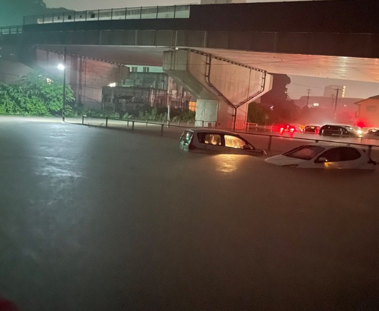 いや帰れないなこれ、浅い所もあるかもしれないけど、水没してる車もおる── @muchan_sake(X投稿より)