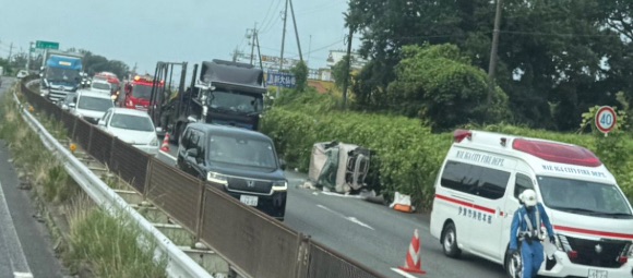 「名阪軽自動車が横転しているらしい」(しの @_shi_no_さん) 「名阪の伊賀あたりでトラックと初心者が事故ってぐちゃぐちゃだった。怖い」(パン @cherietantoさん)