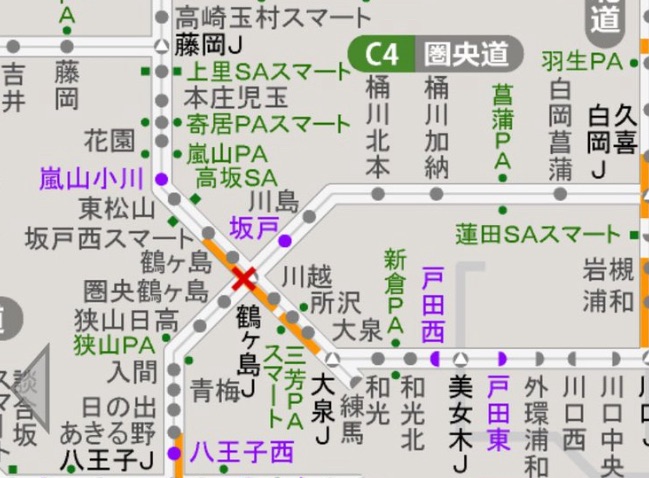 「はいはい、関越道下りは鶴ヶ島jct事故。言わんこっちゃない」