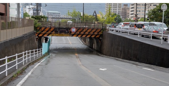 冠水路への進入は避ける(車両故障や水没の危険) 迂回ルートを事前に確認 大雨の際は最新の気象・交通情報をチェック 徒歩でも冠水箇所には近づかない