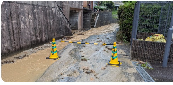 今回の土砂災害により宗像市の陵厳寺3丁目を中心に道路が通行止めとなっています。最新の情報を常に確認し、安全第一で行動してください。