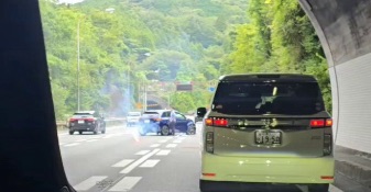 2025年8月13日(水)午後、東名高速道路 上り線(東京方面)太郎ケ尾トンネル先(神奈川県山北町谷ケ)で乗用車2台による交通事故が発生しました。