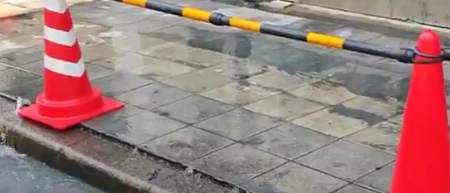 【速報】大阪市淀川区西中島3丁目で水道管破裂か?歩道から水が噴出する事態発生