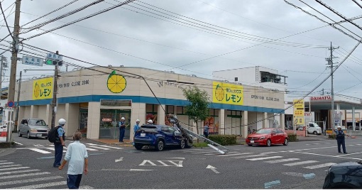 - 10:15頃:「永楽町の先、レモンとウエルシアの交差点で電柱が倒れ、信号が消えている」との目撃情報。
