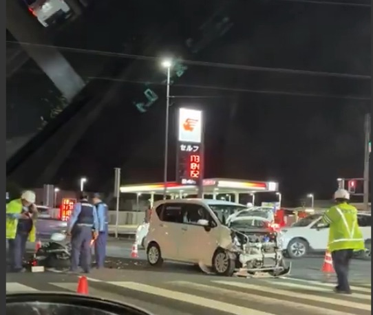 群馬県大泉町・354号交差点でバイクと軽自動車の重大交通事故発生