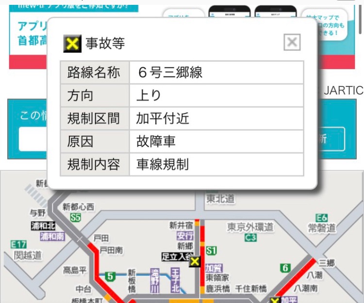 - 発生場所:東京都足立区綾瀬6丁目付近、高速道路 三郷〜加平間