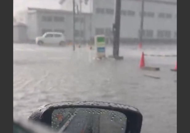 | 状況 | 道路冠水/三角コーンが浮遊・一部水没 |