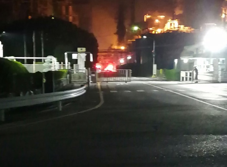 目撃者によるSNS投稿によれば、近隣工場で火災が発生した模様で、夜明け前の時間帯に消防車両が集結している様子が確認されています。