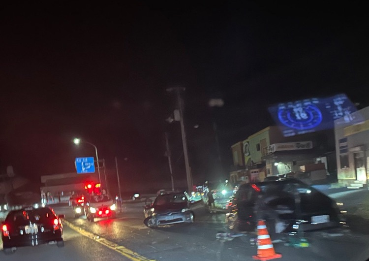 事故処理のため、現場付近では通行規制が敷かれており、夜間にもかかわらず周辺道路は大きな渋滞となっています。