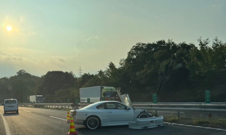 【速報】愛知県小牧市・中央道で交通事故発生 白い車が単独事故 8月26日夕方