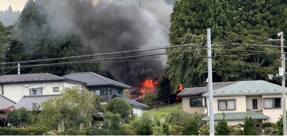 【速報】岩手県平泉町平泉で火災発生 住宅地から黒煙と炎が立ち上がる