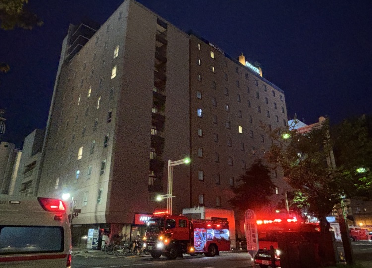 「豊水すすきの駅のアパホテルで火事?消防車や救急車が結構来始めた」
