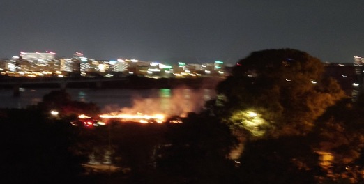 大阪市北区・淀川河川敷で火災