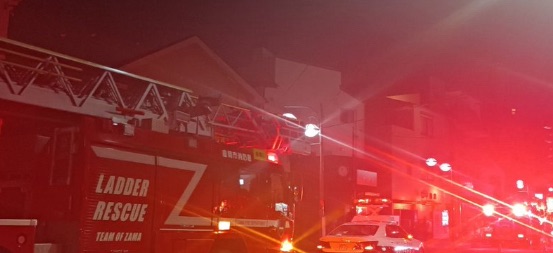 投稿された写真には、はしご付き消防車(LADDER RESCUE)やパトカー、救急車が並び、赤色灯で道路一帯が真っ赤に染まっている様子が映し出されています。近隣住民が不安そうに見守る中、消防隊員による懸命な消火活動が続けられました。