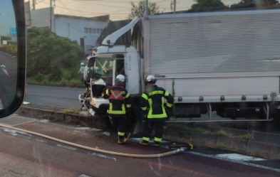 現場には消防隊が出動し、事故処理が行われています。通勤時間帯に重なり、現場周辺では一時的な 通行止め・渋滞 が発生しています。