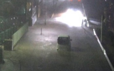 実際の現地写真では、街路に水が溢れ、軽自動車が取り残されている様子が確認できます。