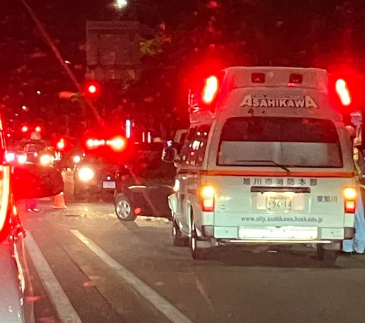 投稿写真には**「ASAHIKAWA」と記された救急車が現場に停車**しており、緊迫した状況が確認できます。