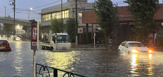 2025年9月8日夕方、東京都西東京市西原町2丁目周辺で激しい雨による冠水・浸水被害が発生しました。道路の一部では水位が高まり、車両の走行が困難となっています。現地の様子を撮影した写真でも、道路全体が水に覆われている様子が確認できます。