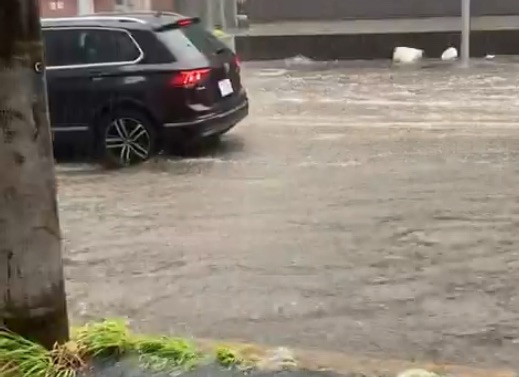 川崎市宮前区馬絹2丁目で道路が冠水 尻手黒川道路が冠水し低速走行を強いられる状況 国道246号でも渋滞発生 気象庁は引き続き大雨による浸水・冠水に警戒を呼びかけ