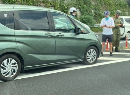 現場写真によると、緑色のレンタカーが自衛隊車両の後方に停車しており、警察官や自衛隊員が対応にあたっている様子が確認できます。SNSでは次のような投稿も見られました。