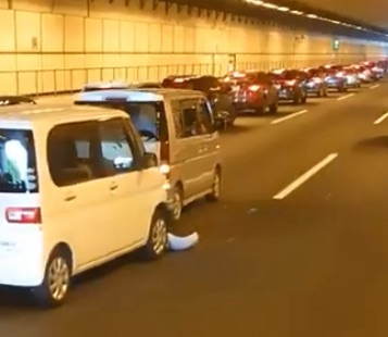 目撃者が撮影した映像には、トンネル内で停車している車両の列と、バンパーが外れて路上に落ちている様子が映し出されています。事故の影響で複数車線にわたり通行止めや速度規制が行われている可能性が高く、後続車両は大きな渋滞に巻き込まれています。