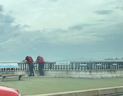 7:01投稿 「琵琶湖大橋付近に消防車、救急車、ヘリが出動しとる。訓練ではなく飛び込み通報があったのか…」 7:45投稿 「朝から緊急車両のサイレンが騒がしい。琵琶湖大橋で何かあったのかな?」 9:51投稿(写真あり) 「琵琶湖大橋現在も消防が捜索中。片側に消防車止まってます」 (写真には「大津市消防局」の赤い車両と、柵越しに琵琶湖を覗き込む消防隊員の姿) 10:07投稿 「誰かが飛び下りたのかは不明だけど、消防の車もう少し止める位置考えないと危ない」