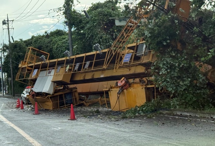 「強風で屋外門型クレーンが動いて道路に落下!凄い現場だよ!」(SNS投稿より)