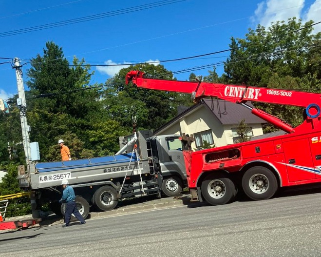 2025年9月19日午前9時過ぎ、札幌市南区簾舞三条5丁目付近で大型トラックが道路脇に突っ込む事故が発生しました。現場ではレッカー車が出動し、事故車両の撤去作業が行われ、一時的に車線規制がかかりました。
