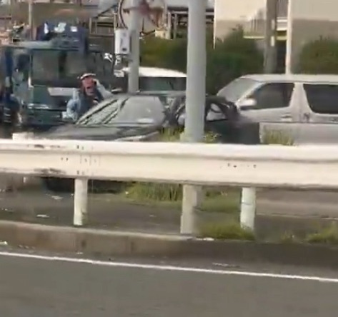 事故の詳しい原因はまだ明らかになっていませんが、周囲の道路状況や天候は比較的安定しており、追突や車線変更時の不注意などが考えられます。警察が事故処理を進めており、道路の復旧には時間がかかる見込みです。