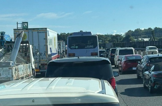 実際の現場写真を見ると、車列は長く続き、運転手や同乗者が車内で待機を余儀なくされています。